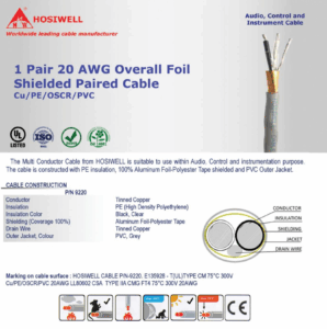 Cáp tín hiệu Hosiwell (9220) – Cáp vặn xoắn chống nhiễu Tcu/PE/OSCR/PVC 1P x 20 [...]