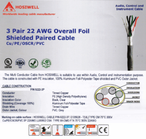 Cáp tín hiệu Hosiwell (9222-3P) – Cáp vặn xoắn chống nhiễu Tcu/PE/OSCR/PVC 3P x 22 AWG – 300/500V, 305m/Drum, Grey | Chính Hãng – Giá Tốt Nhất